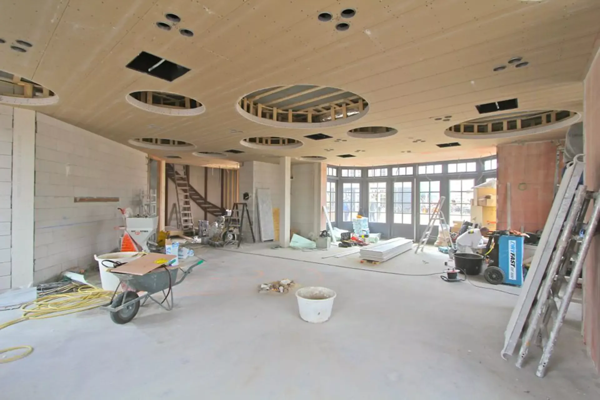 Voor het club/restaurant hebben we gebruik gemaakt van het innovatieve Diamant pleister van Knauf, een stucmortel die vele malen sterker is dan de gangbare materialen. Dit zorgt voor extra duurzaamheid en weerstand. Uiteraard hebben we alles afgewerkt met een hoogwaardige, goed reinigbare buitenkwaliteit muurverf, om de ruimtes niet alleen stijlvol, maar ook onderhoudsvriendelijk te maken.